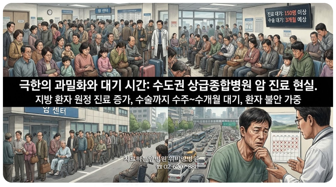 국내 암 환자의 생존율은 세계 최고 수준이지만, 의료 전달 체계에는 뚜렷한 불균형이 존재합니다. 서울 아산병원, 삼성서울병원, 서울대병원, 세브란스병원, 서울성모병원 등 이른바 '빅5' 병원으로 암 환자가 집중되는 현상은 매년 심화되고 있습니다.